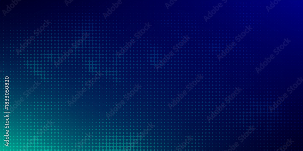 halftone with blue-green gradation, abstract background pattern, neon light reflecting walls and floors, dark colors, and feel the speed of digital technology connected with blue-green background. #1833050820