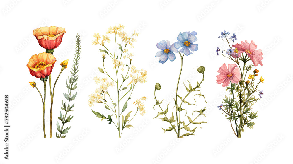 hand drawn dainty flowers isolated #732504618
