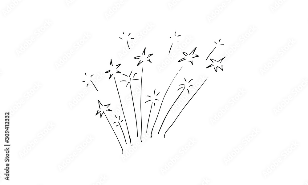 hand drawn fireworks . Christmas and new year drink Doodle art. use it as a clipart in greeting cards, print on clothes, animation, packaging or design of your website #309412332