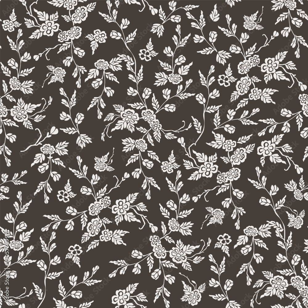 Hand-drawn organic jasmine vines seamless pattern in vintage linocut style for premium sustainable packaging #1905739996