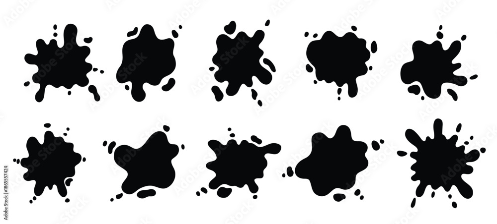 hand drawn set of black paint splashes different shapes #1865557424