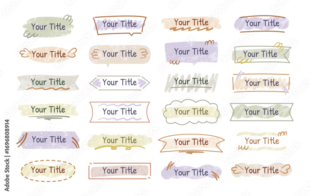 Hand drawn title frames. Doodle banner borders, sketchy text boxes and speech bubble outlines. Decorative label templates, cute handwritten messages for notes, quotes and titles vector set. #1696808914