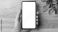 hand holding smartphone with blank white screen on wooden desk, perfect for mockup, app design, and modern presentation visuals #1791488377
