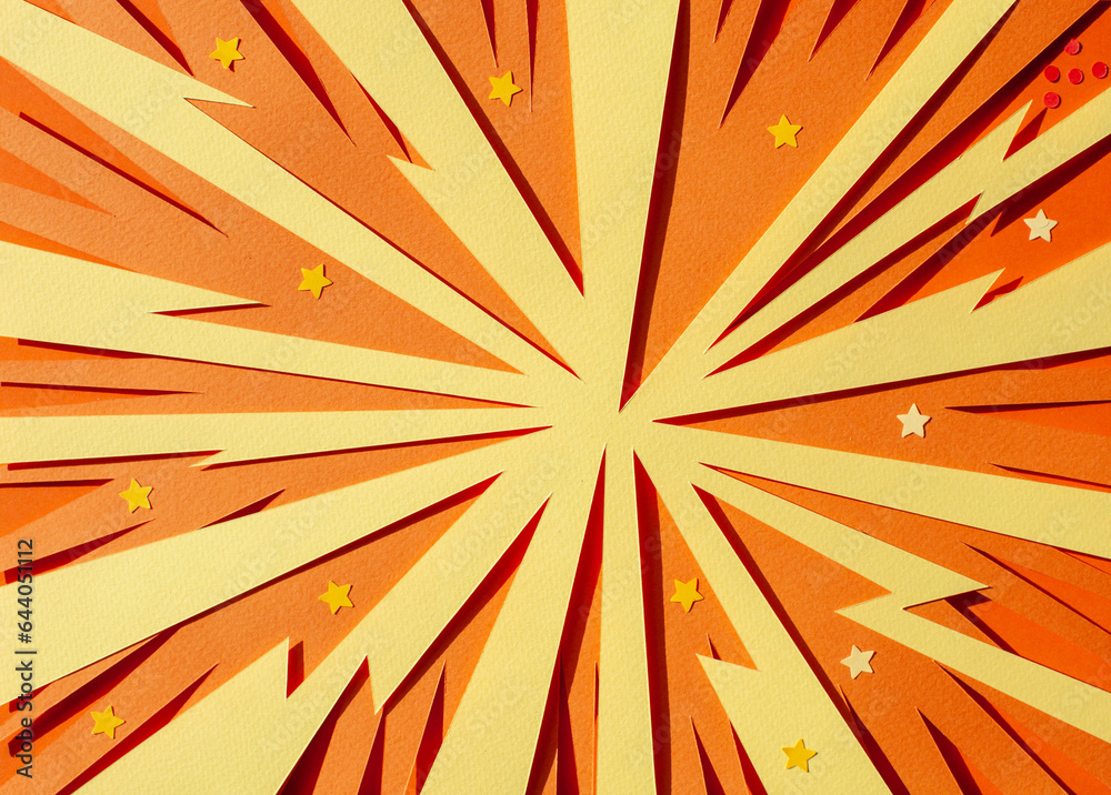 Handmade colorful paper cutting speech bubble for your text. Pop art and comic concept. Yellow and orange background. #644051112