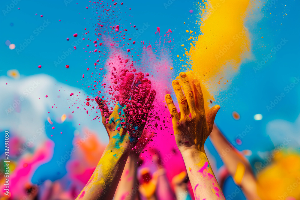 hands with holi powder for Hindu spring festival of colours #712791030