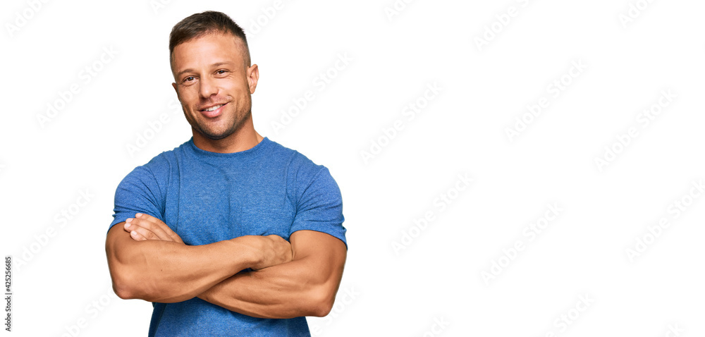 Handsome muscle man wearing casual clothes happy face smiling with crossed arms looking at the camera. positive person. #425256685