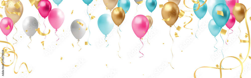 Happy birthday background with balloons and confetti. Vector Illustration. #722717659