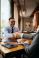 Happy business coworkers handshaking during meeting in cafe. #1735571612