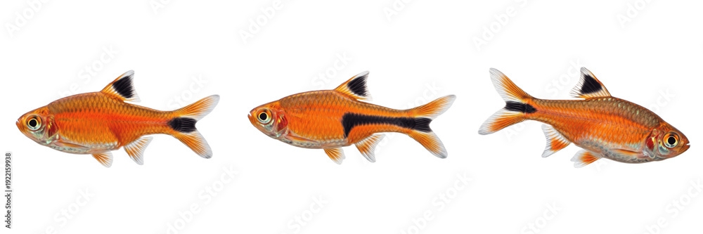 Harlequin rasbora Trigonostigma heteromorpha isolated on white background, Southeast Asian freshwater nano aquarium fish tropical schooling species cutout image #1922159938