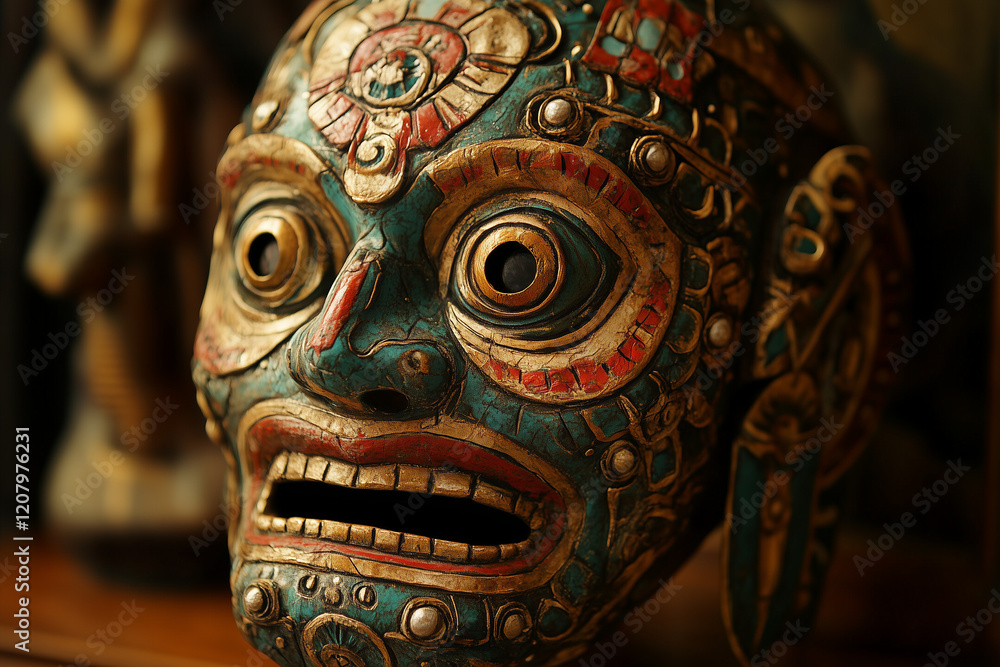 Haunting Tribal Mask Portrait Dark Artistic Shadow Study #1207976231