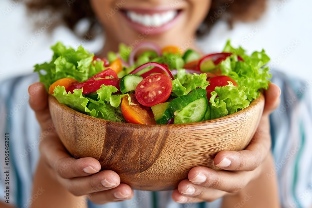 Healthy Eating And Wellness Woman Holding Fresh Salad Bowl With Vegetables Promoting Nutrition Diet And Lifestyle Choices For Health And Well-Being #1965452011