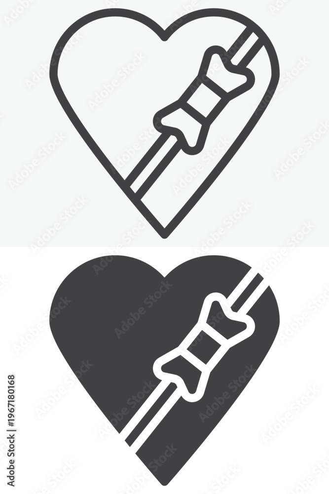 Heart ribbon gift box icon in line and solid styles. Outline and solid icon, editable stroke vector sign symbol. Heart gift box icon for love celebration. #1967180168