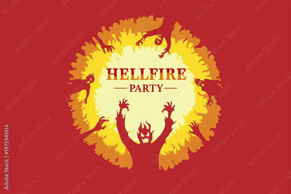 Hellfire circle with featuring demons and hands rising from flames, designed in a bold fantasy and horror style. The underworld, dark supernatural energy, perfect for posters perfect for posters. #1875341616