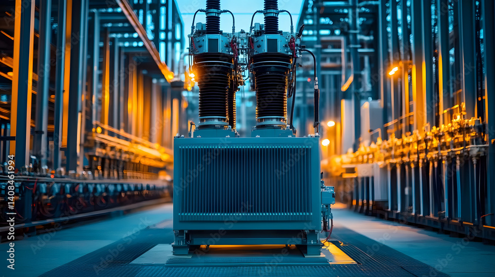 High voltage transformer in contemporary energy facility for efficient power distribution #1408461994