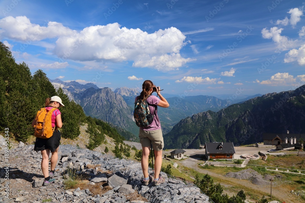 Hiking adventure in Albania. Summer landscape of Theth Mountains in Albanian Alps (also known as Accursed Mountains). Alps of Albania National Park. Mark Zagore mountain peak area. #1898558343