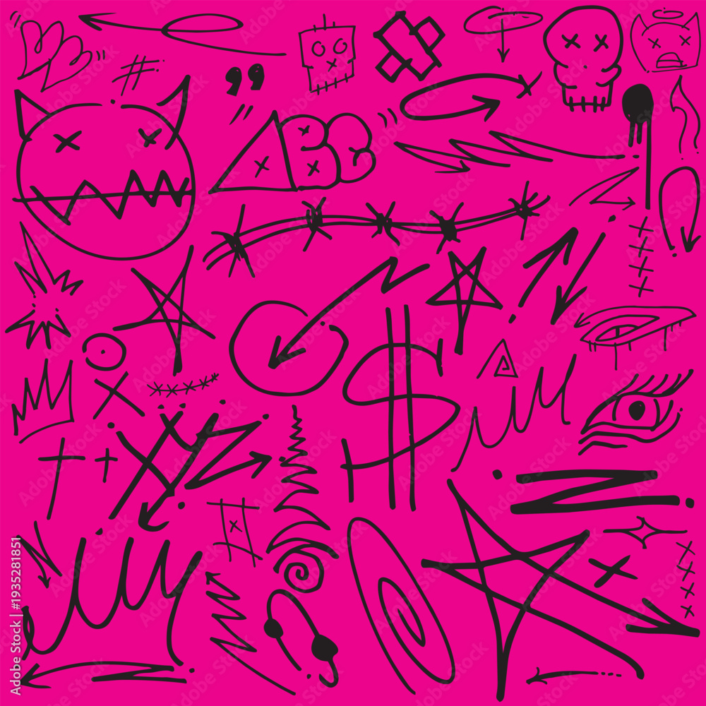 hiphop street art graffiti tag doodle set for tshirt design template, 2d illustration vector, icon logo collection #1935281851