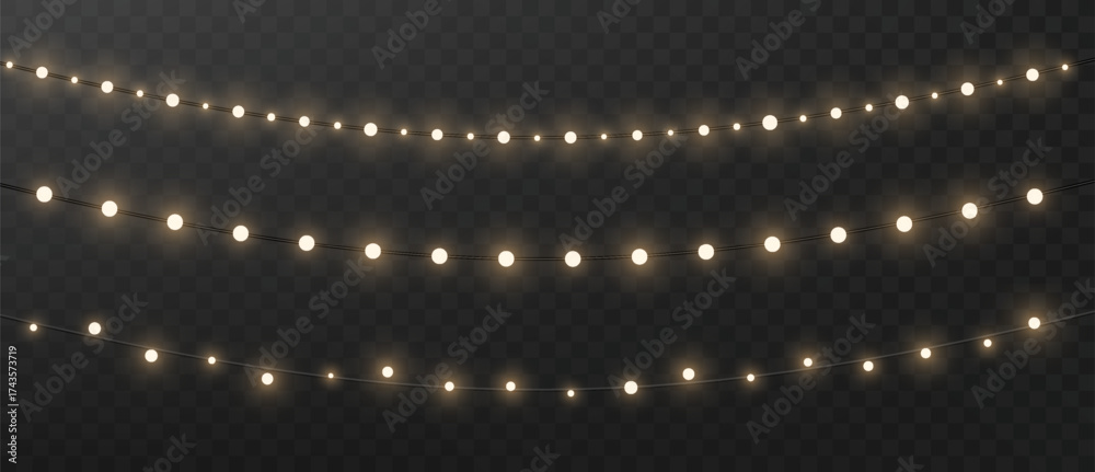 Holiday Christmas lights garland. Glowing vertical decoration isolated on dark background #1743573719