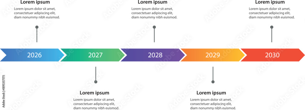 Horizontal Business Timeline Infographic Template - Five Year Roadmap with Colorful Chevron Arrows and Yearly Milestones #1895357175