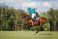 Horse polo player hit the ball with a mallet in action. Profile side view #270087771