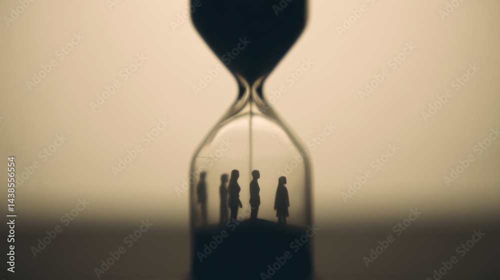 Hourglass Filled with Human Silhouettes Representing Different Life Stages in Soft Light #1438556554