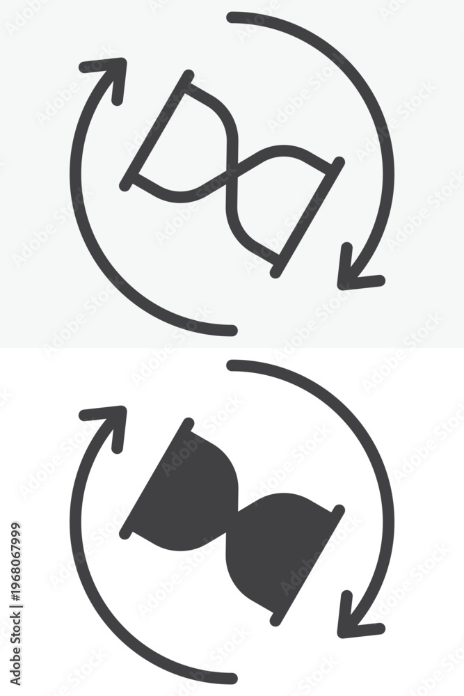 Hourglass Rotation Arrows icon in line, outline and solid style. Editable stroke vector sign and symbol set for time use, with hourglass rotation arrows icon in simple versions. #1968067999
