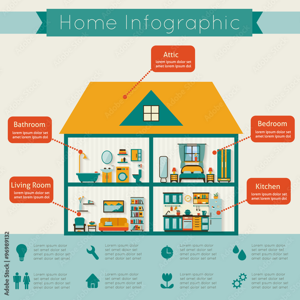 House in cut. Detailed modern house interior. #96989132