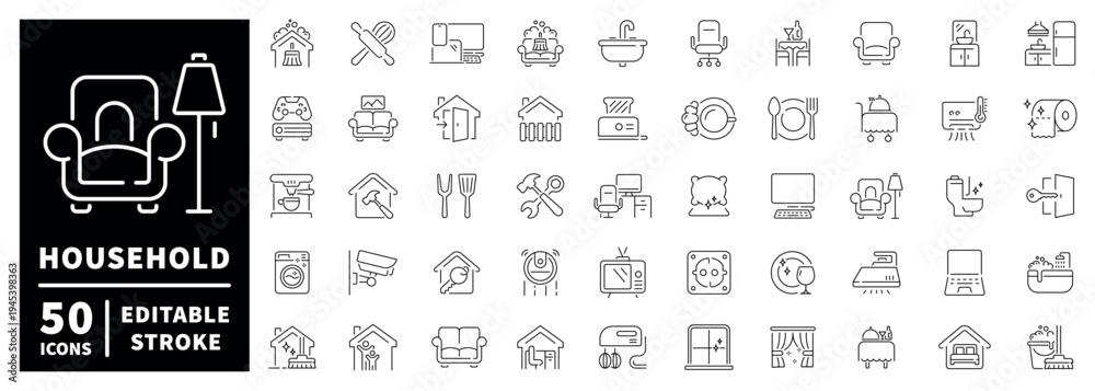 Household outline icon set. editable stroke thin line style for home and appliance symbols #1945398363