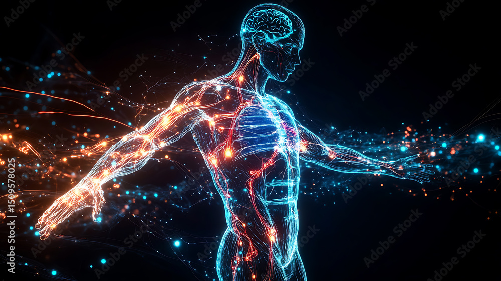 Human Body with Illuminated Nervous and Circulatory Systems #1509578025