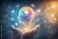 Human head silhouette with glowing brain and medical cross symbol representing mental health care wellbeing and psychological support concept #1934719924
