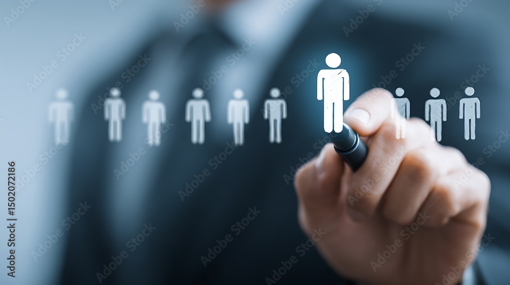Human resources manager using stylus choose the right candidate recruitment process,Hiring,Team building strategy,Corporate recruitment process with CRM tools and Digital innovation in human resources #1502072186