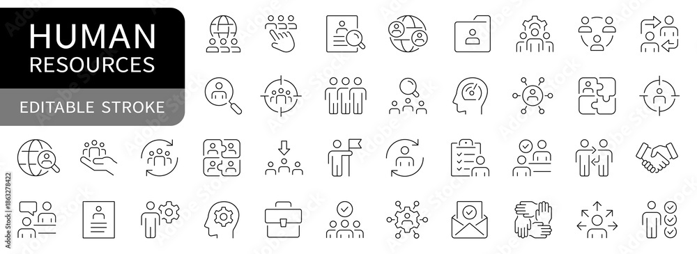 Human resources simple line icons set. HR, hiring, employee editable stroke icon. vector #1863278422