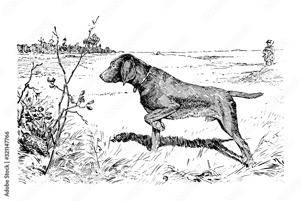 Hunting Dog - Vintage Engraved Illustration 1889 #321147766
