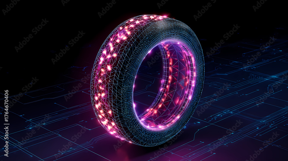 Illuminated tire in abstract concept, showcasing innovative technology #1764670406