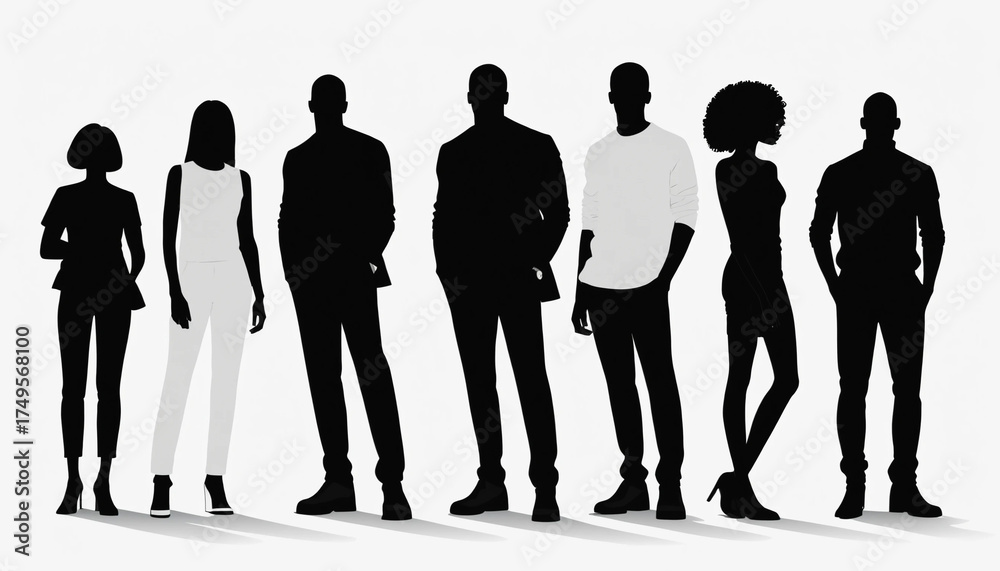 Illustration de silhouettes noires d’hommes et de femmes isolées sur fond blanc #1749568100