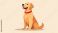 Illustration of a golden retriever sitting with a red collar and tag, tongue out, against a beige background. #1817864336
