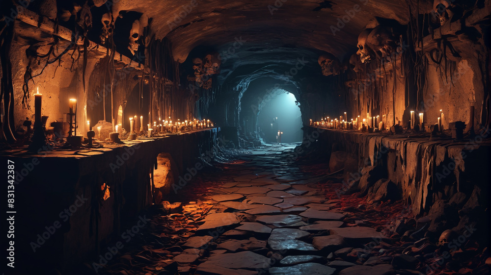 In the forgotten catacombs beneath the city, necromancers weave dark spells to raise an army of undead. Generative AI #831342387