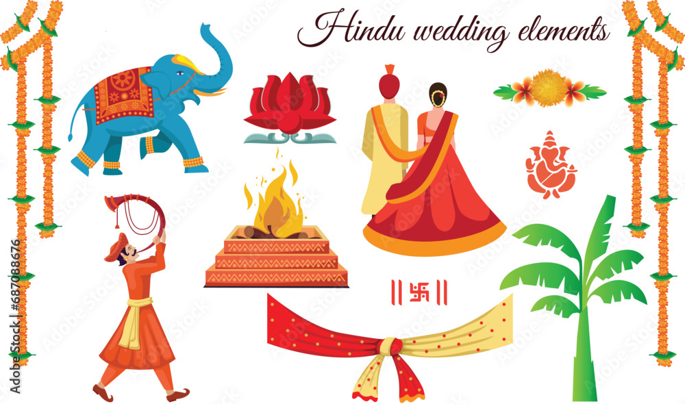 indian hindu wedding elements vector #687088676