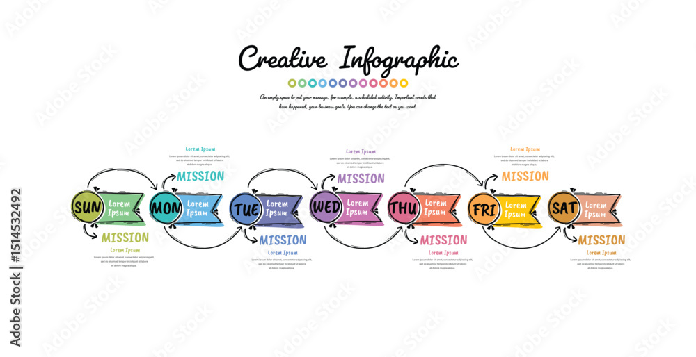 Infographic Hand drawn weekly planner, Timeline business for 7 day, Presentation business can be used for Business concept with 7 options, steps or processes. #1514532492