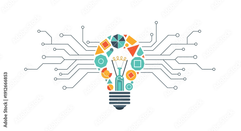 Innovative AI technology and digital solutions, symbolizing creativity and future progress, connecting ideas through a bright lightbulb #1912666853