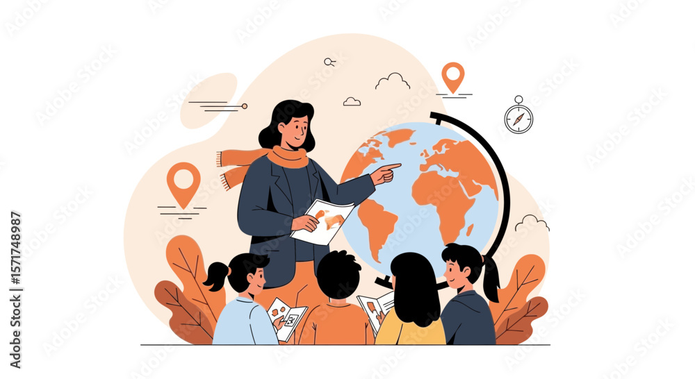 Inspiring Geography Lesson Teacher Explaining World Map To Diverse Students #1571748987