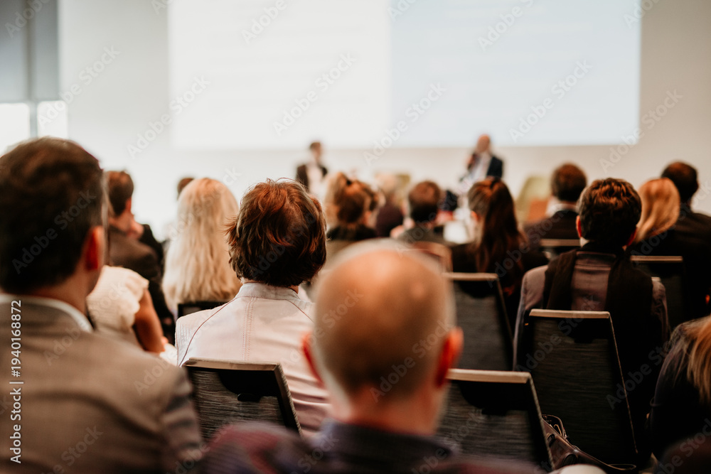 Interview and round table discussion at business convention and presentation. Audience at the conference hall. Business and entrepreneurship symposium. #1940168872