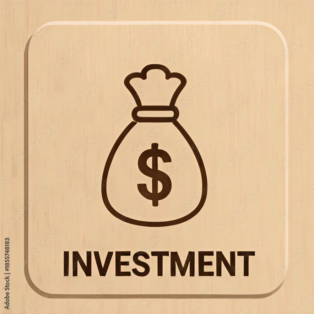 Investment Concept Money Bag Icon with Dollar Sign on Wooden Block, Finance and Wealth Management Symbol #1855748183