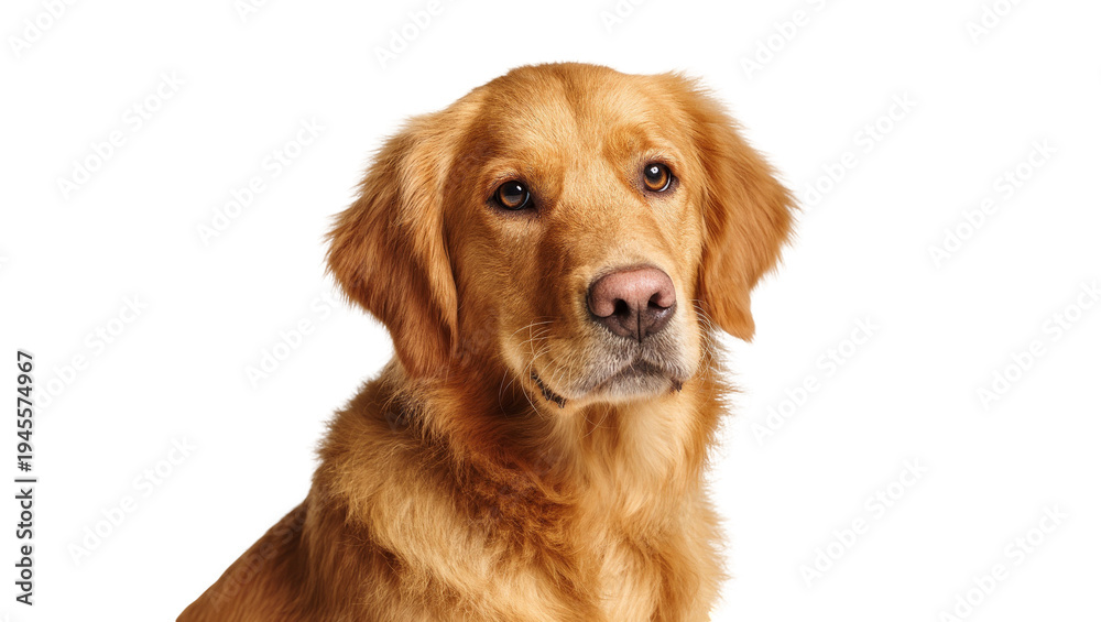 Isolated Golden Retriever dog looking intently at camera, loyal and friendly pet portrait #1945574967