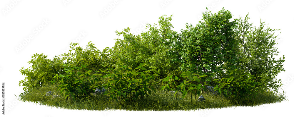 Isolated Green Bushes and Shrubbery With Grass Patch and Rocks #1927639786