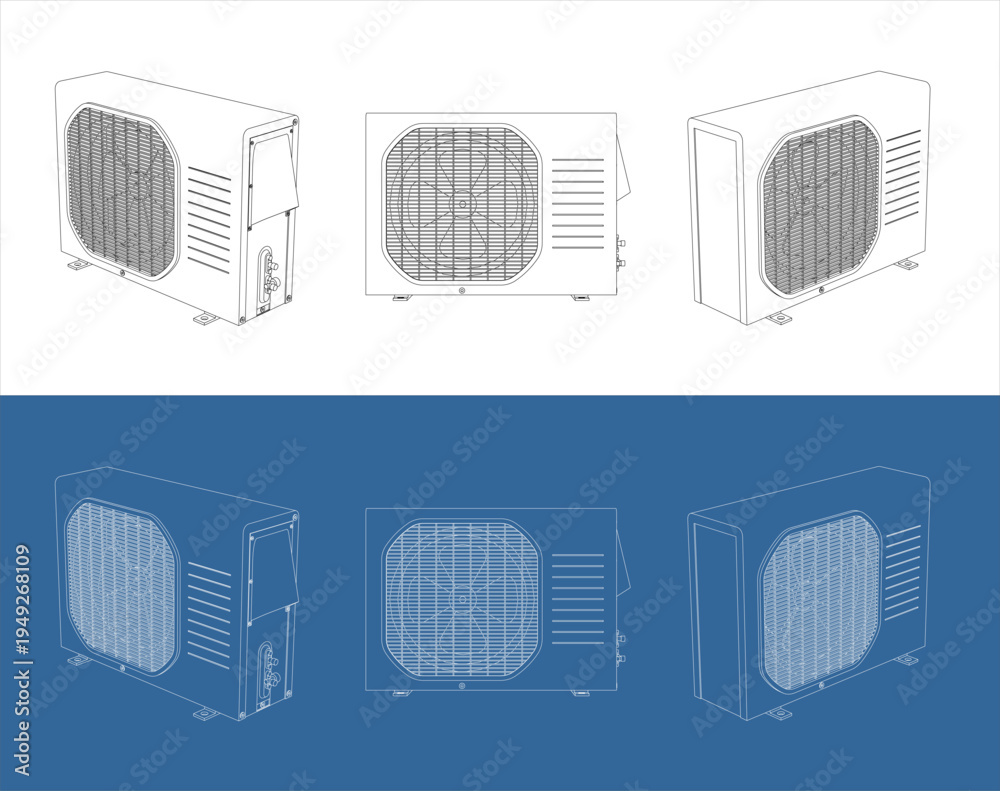 Isometric Perspective Outdoor Air Conditioner Condenser Unit Technical Drawing Blueprint #1949268109