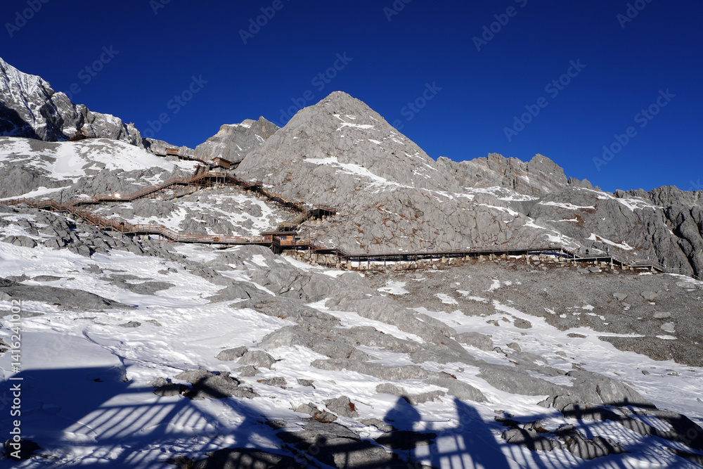 Jade Dragon Snow Mountain is a mountain massif or small mountain range in Yulong Naxi Autonomous County, Lijiang, Yunnan province, China. One of China's finest views, famous travel destinations #1416241002