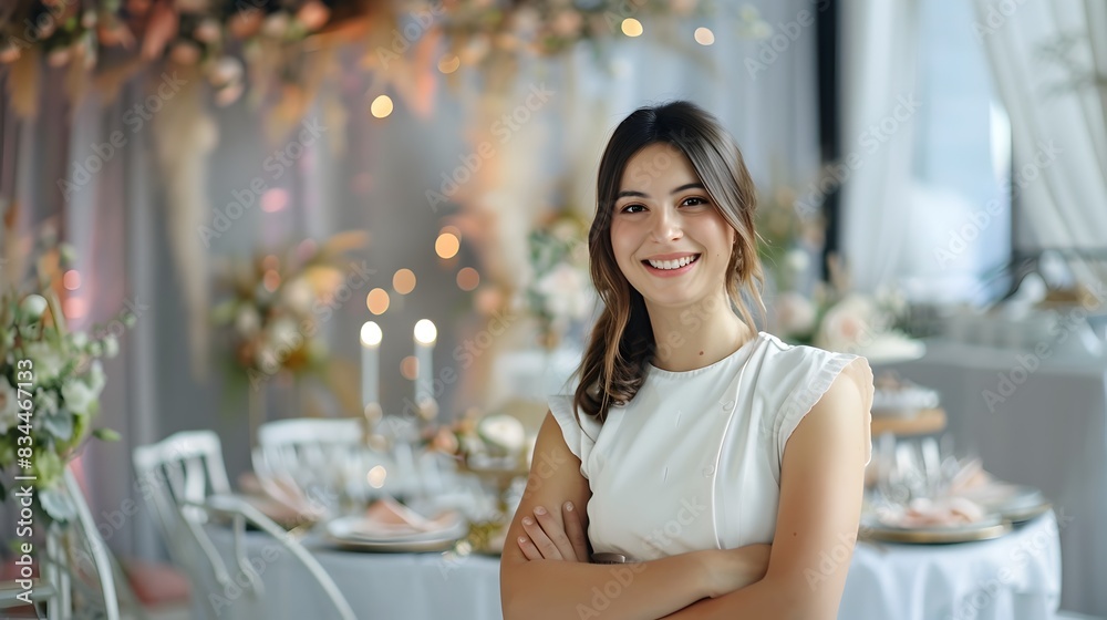 Joyful Event Coordinator Smiling at in Festive Indoor Setting #834467133