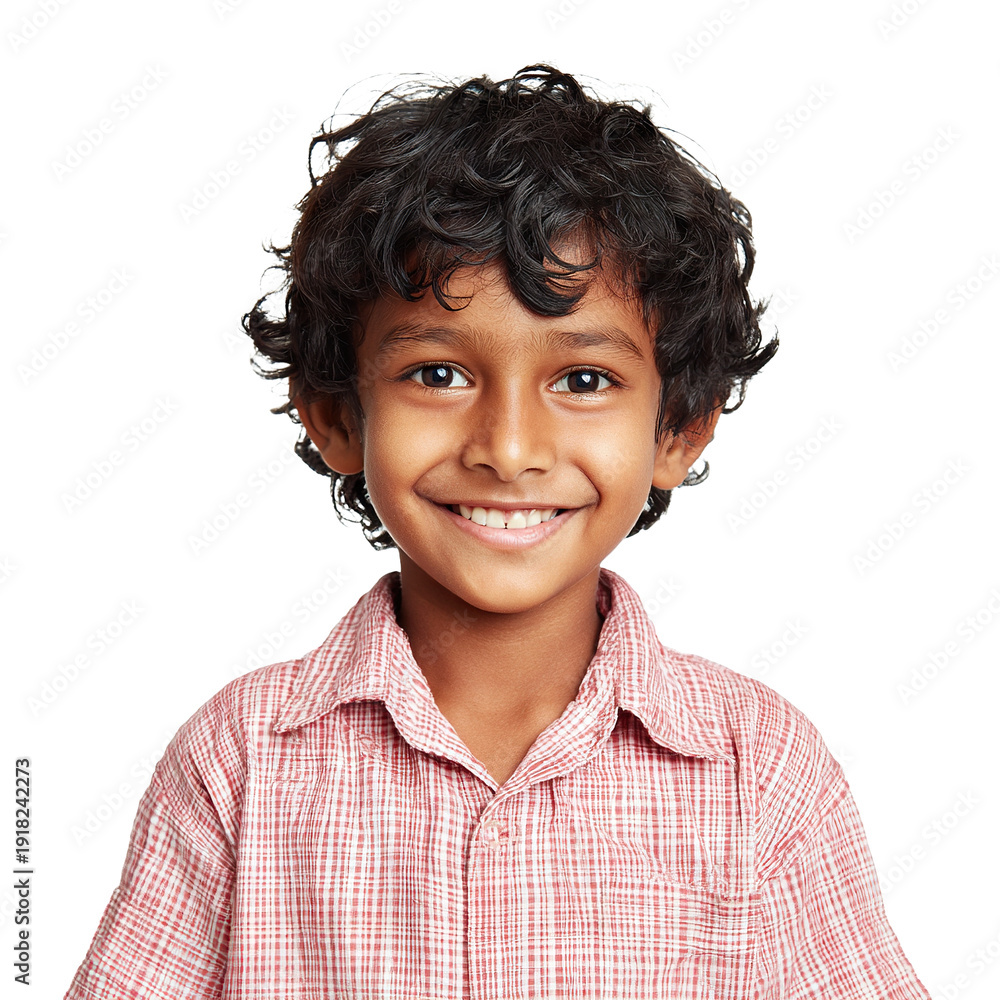 Joyful indian child boy face close portrait with friendly smile, isolated on transparent cutout background #1918242273