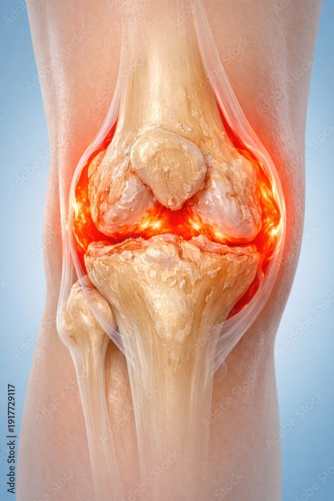 Knee Osteoarthritis Illustration Showing Joint Degeneration and Inflammation. #1917729117