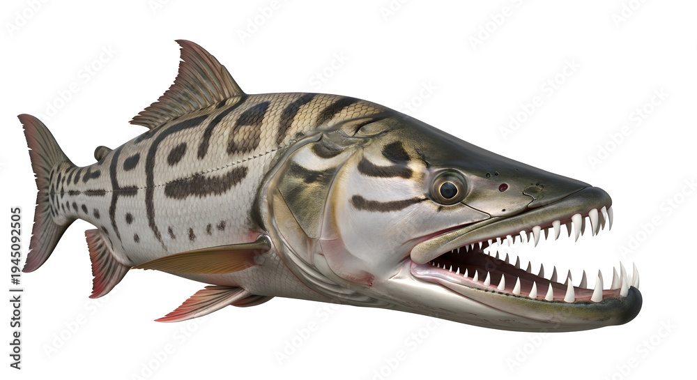 Large predatory fish with sharp teeth and distinctive markings shown in a threatening posture #1945092505